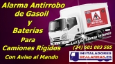 CONSEJO : Cuidado con las imitaciones. Esta alarma antirrobo de combustible es de 2 vías con aviso al mando y es la original, tenga cuidado que hay imitadores por la red que le pueden engañar. Nos están copiando hasta los textos de nuestras páginas. Características: Incorpora una luz led blanco de alta intensidad *Sensor de vibración en cada depósito con ajuste manual de sensibilidad. ***Sensor en baterías por eventual robo de las mismas***.*Batería ainterna auxiliar. *Activación en modo normal y silencioso. *Armado automático. *Sirena potente de 120 dB. *En cajas estancas soportando altas y bajas temperaturas. *No se modifica ningún sistema operativo en cabina.